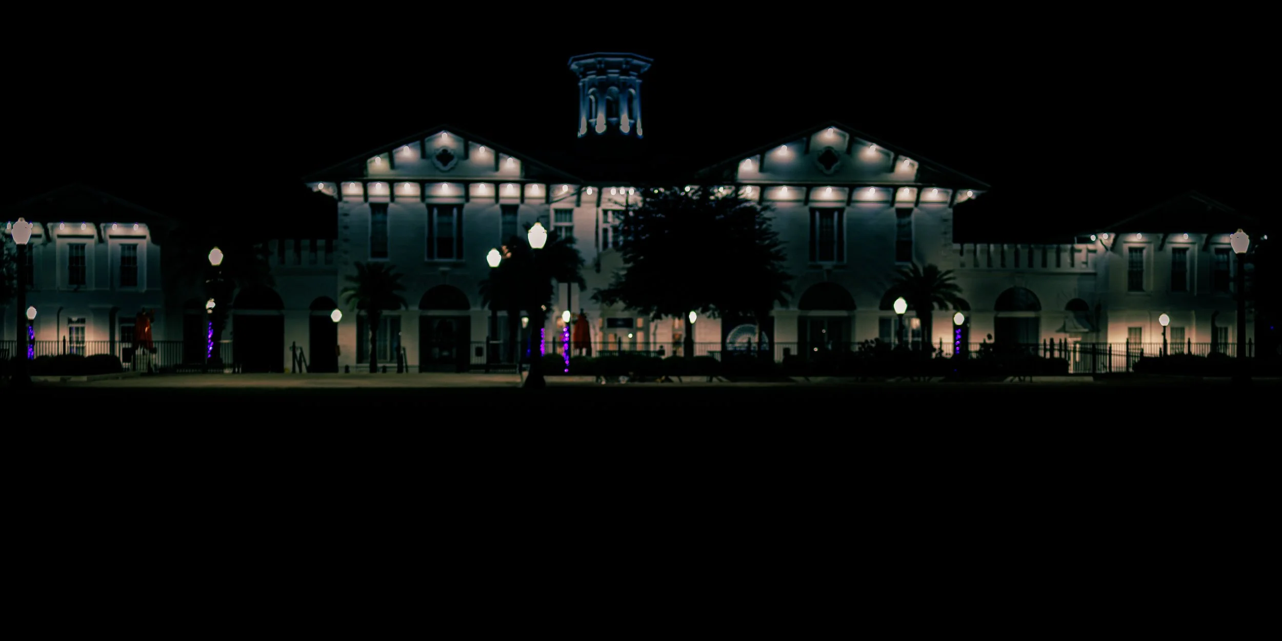 Illuminated against the night, the quiet facade stands steady and still, holding its place long after the day has passed.
